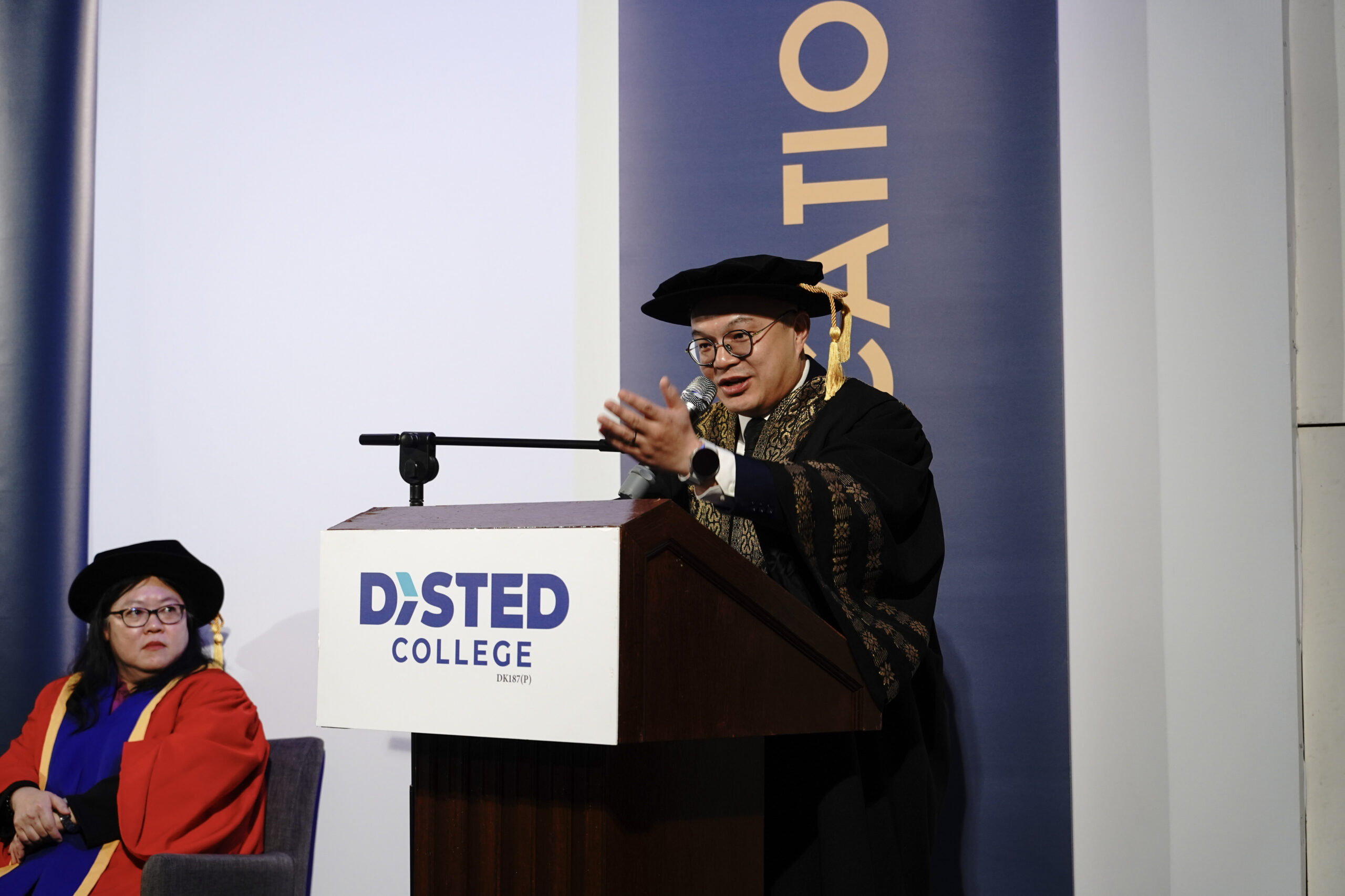 Addressing the evolving landscape shaped by Artificial Intelligence (AI), the President reminded graduates of the importance of adaptability and lifelong learning. “In these challenging times, remember the skills and wisdom acquired during your time at DISTED. Apply your abilities wisely, stay relevant, embrace opportunities, and never give up. And if ever you need guidance, know that the DISTED Community — our 15,000-strong alumni network, steadfast academic team, and supportive non-academic staff — is always here for you.”