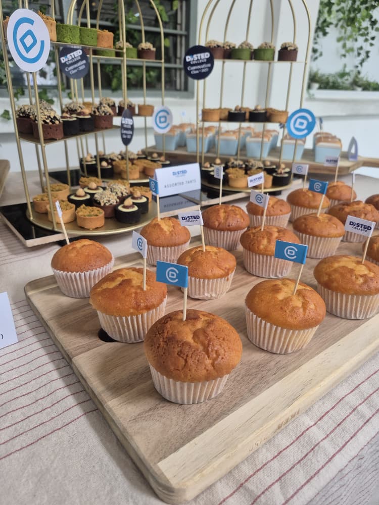 Adding a personal touch, the DISTED management team presented a special dessert counter showcasing assorted tarts, cupcakes, and Hokkaido cakes. Each item was adorned with charming mini flags featuring the DISTED College logo. This thoughtful gesture highlighted the college’s creative spirit and symbolized pride and unity in celebrating the Class of 2025.