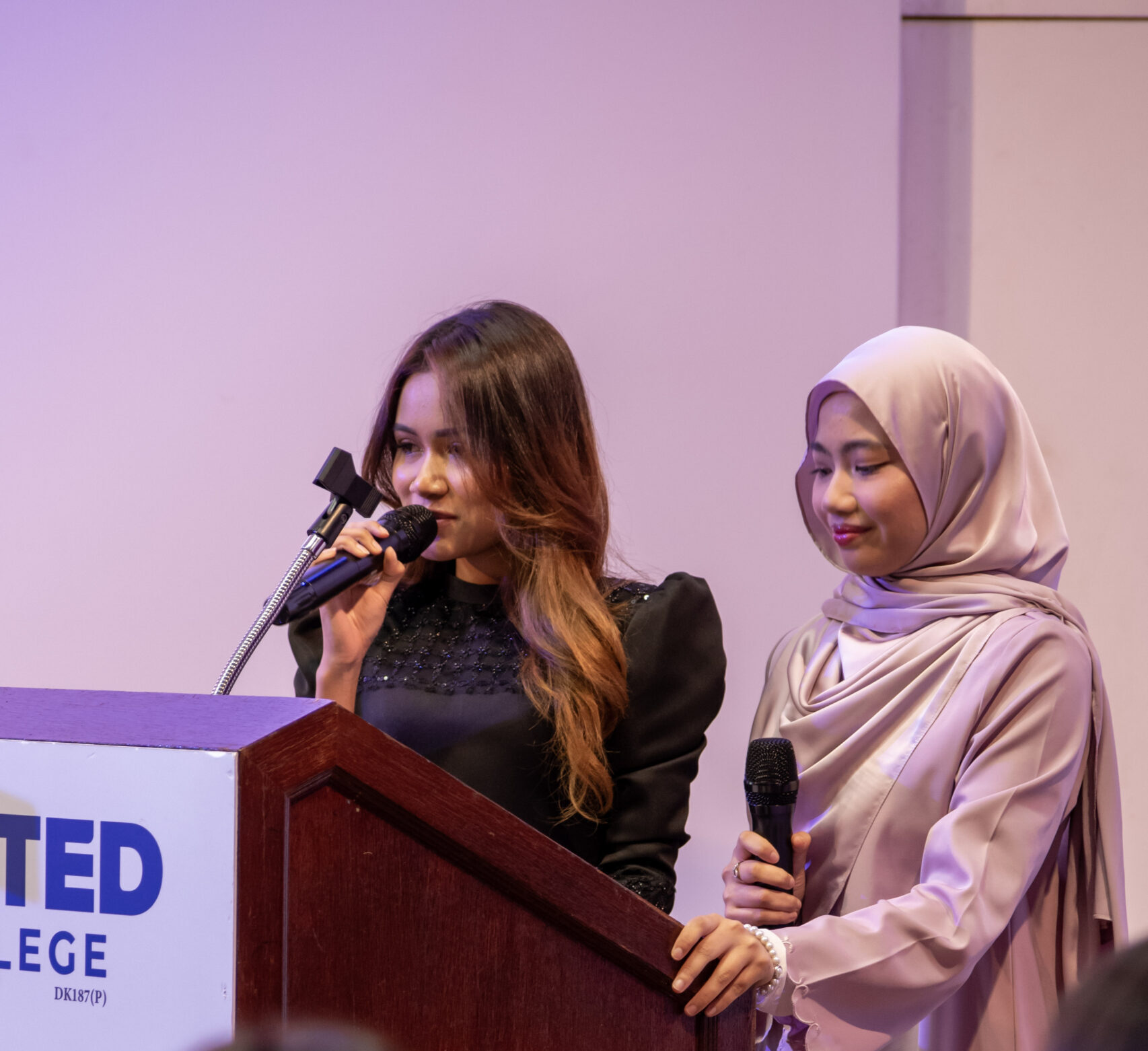 The evening was made truly memorable by heartfelt speeches from scholarship recipients. Jessica Kaur, representing the Tun Endon Scholarship, shared her inspiring journey of resilience in managing severe food allergies while excelling in her studies. She reminded everyone that “every struggle can be turned into strength when there are people who believe in us.” Jessica also spoke about her involvement in the Mooncake Festival fundraising by DISTED Kelab Penyayang, which raised RM2,050 for the Penang Fo Yi Haemodialysis Society, reflecting the college’s commitment to compassion and community service.