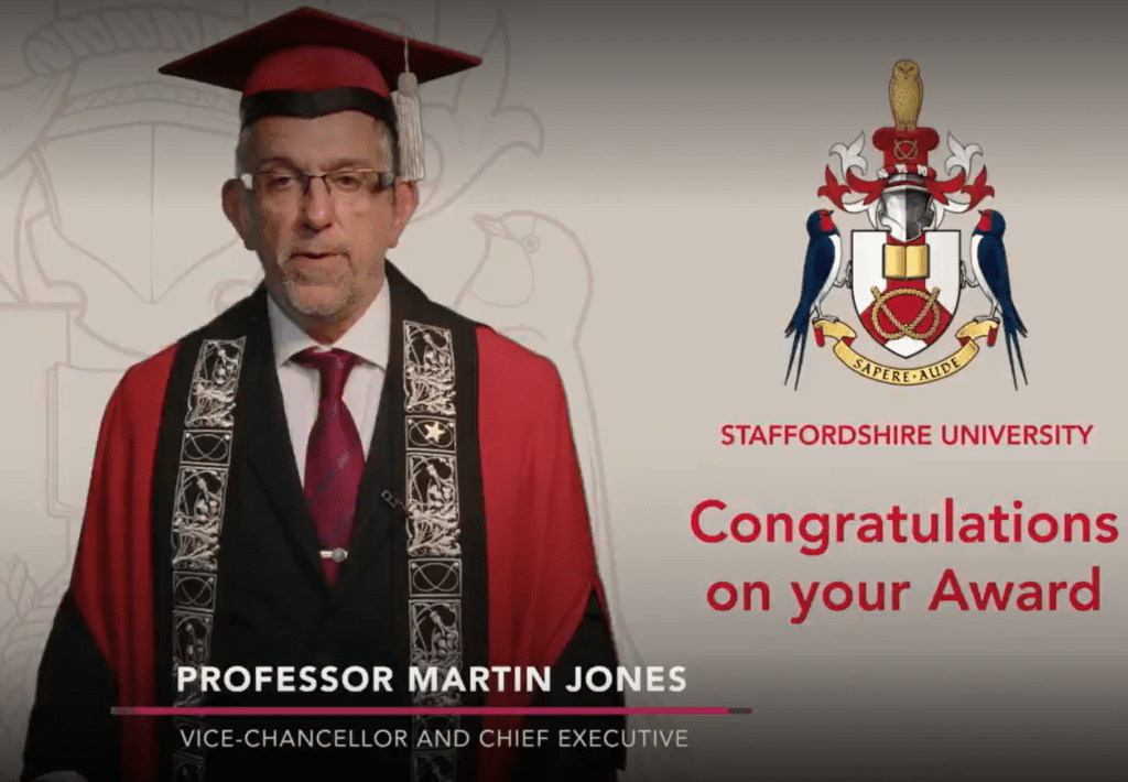 Graduation Speech by Professor Martin to DISTED’s Staffordshire University graduates!