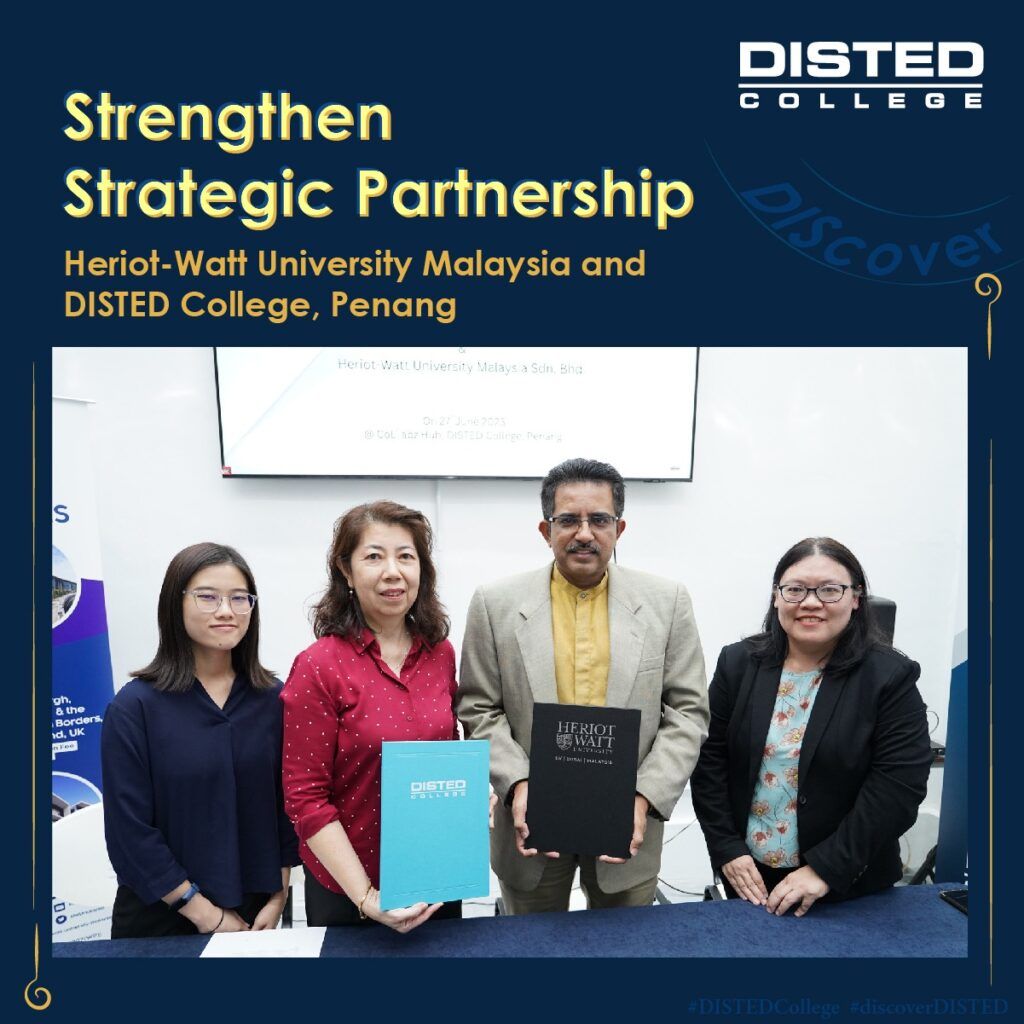 27 June 2023, Penang – DISTED College, Penang, is pleased to announce the expansion of its strategic partnership with Heriot-Watt University Malaysia (HWUM). This collaboration will now include an articulation pathway for Diploma students, enabling them to seamlessly continue their degree programmes at the HWUM campus in Putrajaya. Under this new agreement, students enrolled […]