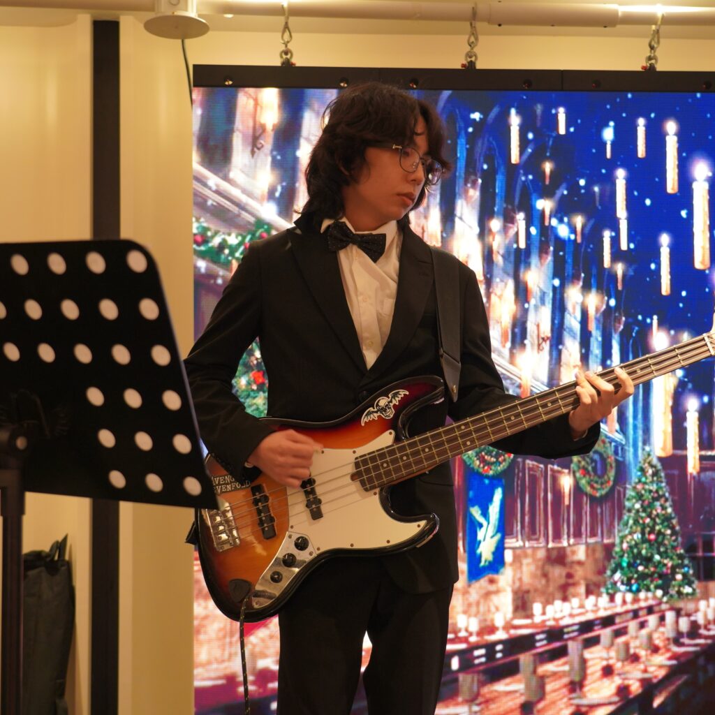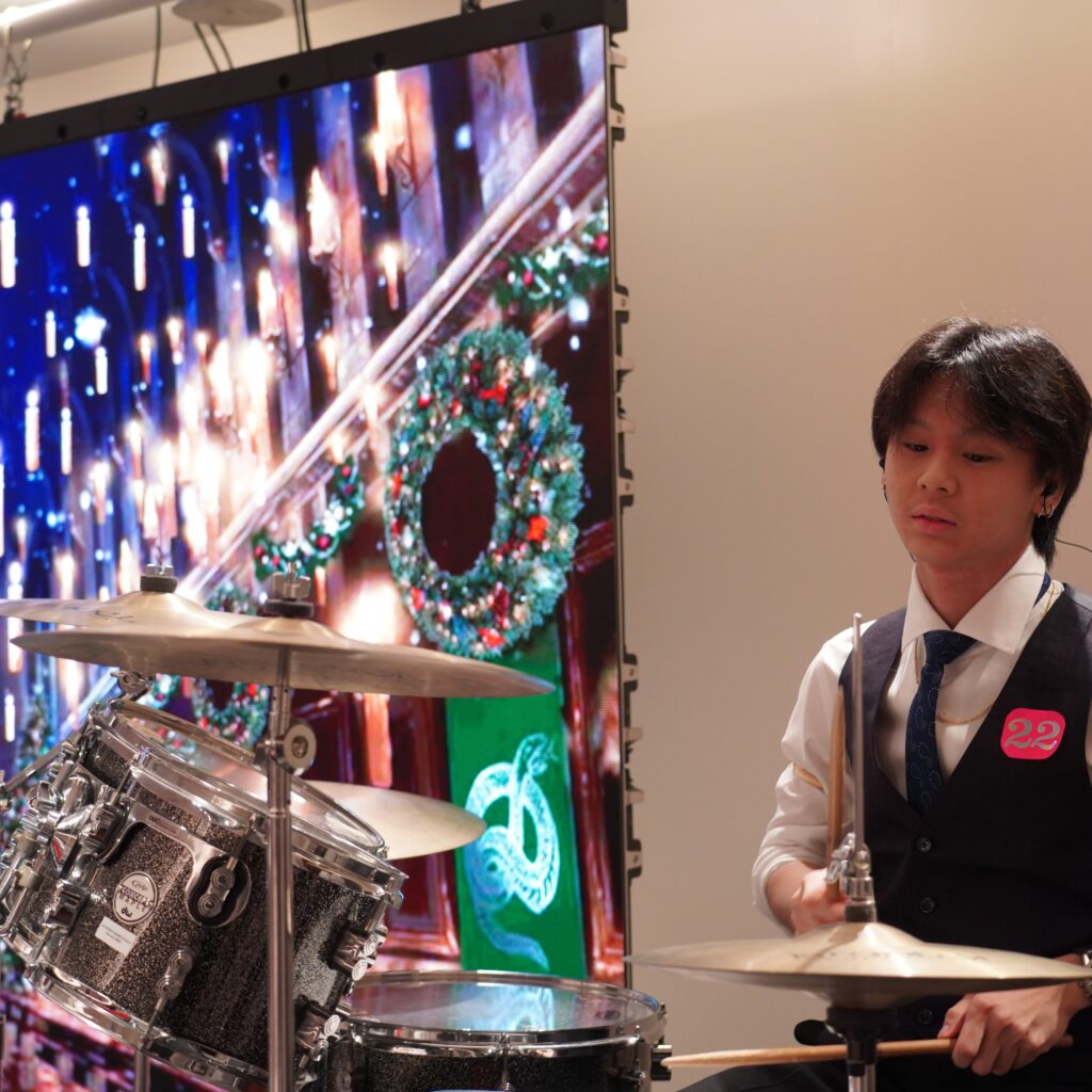 Originating from the entrance, guests were greeted with a mindblowing Great Hall experience. A stunning backdrop of the Yule Ball was shown on an LED Screen, paired with thematic music, setting a captivating theme for the evening. Every detail was carefully selected, all the way from the themed photo booth to the elegantly arranged dining tables. Every guest was welcomed with a personalised letter and magic wand, which added a unique and interactive touch to the night.